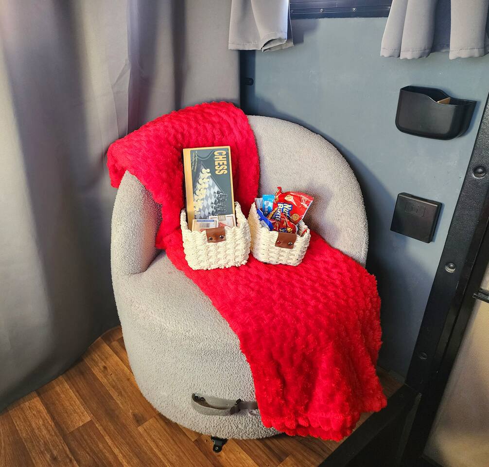 The RV includes solar power and a dual-battery house bank, which supports most onboard needs without hookups. Air conditioning and other high-power appliances require campground electrical hookups. Guests who want AC and microwave use must reserve a campsite with electric service. Only approved dogs allowed. Maximum allowable is two small dogs. Pets must be kept off of the upholstery and bedding. Guests are responsible for confirming campground delivery permissions and site compatibility prior to booking. If delivery is denied by the campground, the Airbnb cancellation policy applies. Guests must reserve their own campground site separately. Please confirm RV availability with us before booking your campsite to ensure dates align. Full hookups (water, electric, and sewer) are strongly recommended for the best experience and full use of all amenities. The toilet, shower, and kitchen faucet will operate without a water hookup for up to 40 gallons. Once this supply is used, a water hookup is required to continue use. Propane powers the stove, heater, refrigerator and water heater. The stove uses manual ignition—please use the provided lighter, as it is not auto-ignition. The RV remains stationary for the duration of your stay. Guests may not drive, tow, or relocate the RV. A link to a video walkthrough and orientation will be provided. Setup and pickup are fully handled by the host. Campground fees are not included in the Airbnb price and must be paid directly to the campground. No festival use.
